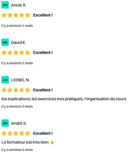 - Vous accĂ©derez Ă des vidĂ©os de formation et Ă des supports de cours Ă tĂ©lĂ©charger pour rĂ©aliser les exercicesÂ