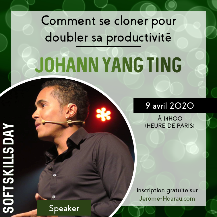 Johann Yang Ting : Comment se cloner pour doubler sa productivité Pour en savoir plus sur Johann, RDV sur son site ! Twitter Facebook LinkedIn Email